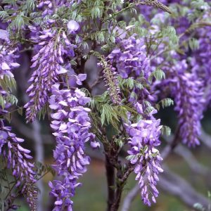 Cunoscută sub denumirea populară de ”Glicina mov”, Wisteria Glicina este un arbust căţărător originar din Japonia